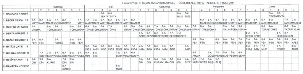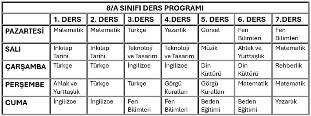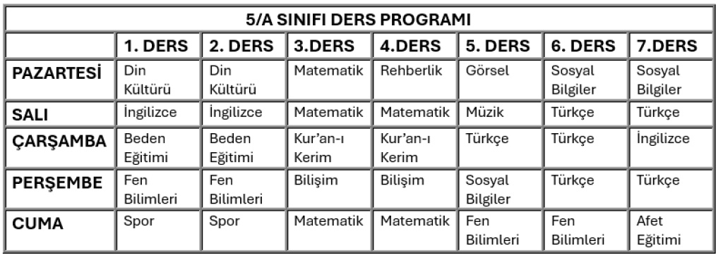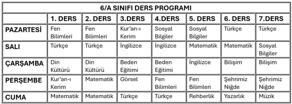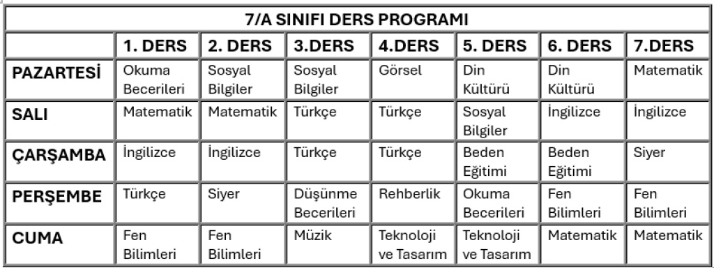 2025-2026 EĞİTİM ÖĞRETİM YILI DERS PROGRAMI